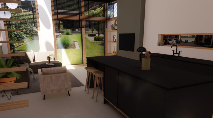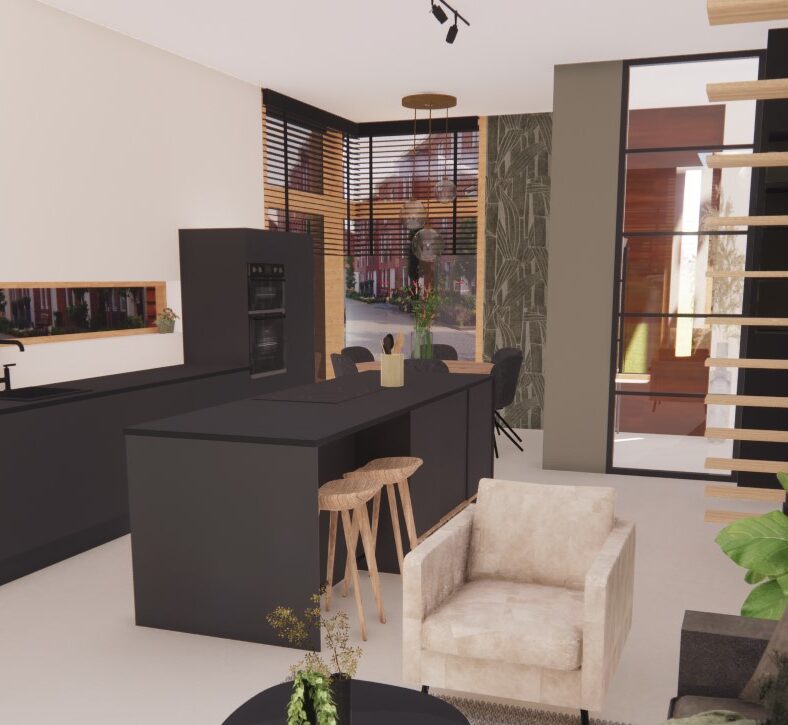 De vraag richt zich specifiek gericht op interieuradvies voor de woonkamer en keuken, waarbij kleur, sfeer, smaak, indeling en een meubel- en accessoireplan samen komen en eenheid creëren. Na via videobellen kennisgemaakt te hebben en hen als persoon te leren kennen en vanuit daar hun stijl, smaak en wensen te leren kennen, is Thuis in Interieurs aan de slag gegaan met het ontwerpen van hun droominterieur.