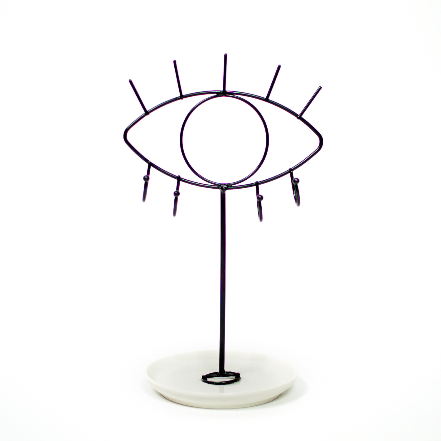 All eyes on you! Met deze sieradenhouder kun je veel armbanden, kettinkjes en ringen kwijt op de metalen haakjes of het keramische schoteltje onderin. Zet ‘m op een leuke plek in huis neer en maak het af met een mooie bos bloemen of een plant en je hebt een gezellige hoek in huis!
