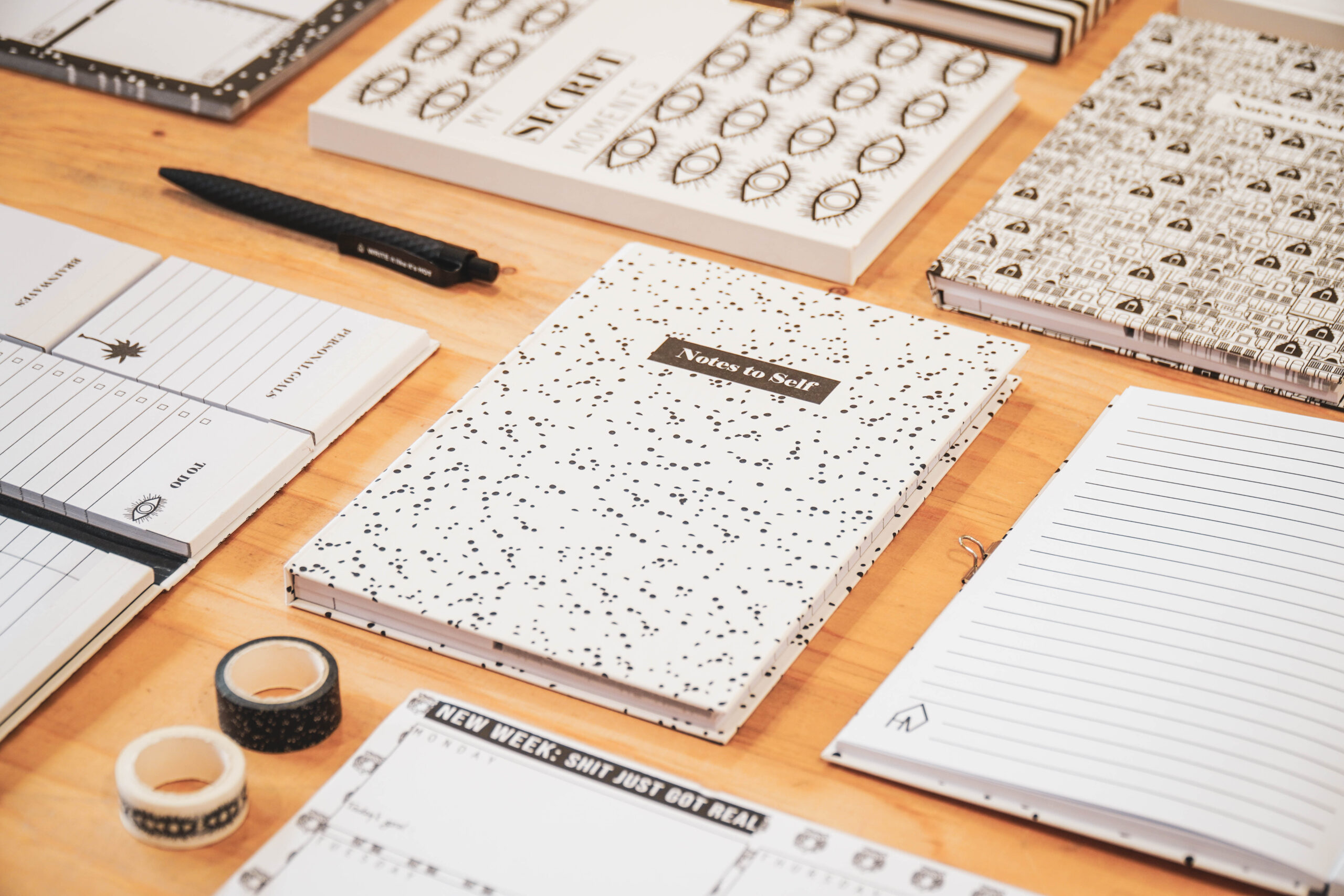 Zoveel te doen en zo weinig tijd! Met deze zwart witte to do boekjes raak je beter georganiseerd en zal je minder vergeten. Daarnaast zien ze er te leuk uit! Belangrijke kenmerken: – Bevat 50 pagina’s – Gemaakt van 70 gr papier – Bevat verschillende afscheurbare blaadjes: Personal Goals, Brainwaves, To Do en blanco notitie blaadjes – Enkelzijdig geprint op elke pagina. – Maat: A5 Styling tip: Laat dit hippe to do boek rustig rondslingeren, want hij ziet er prachtig uit!