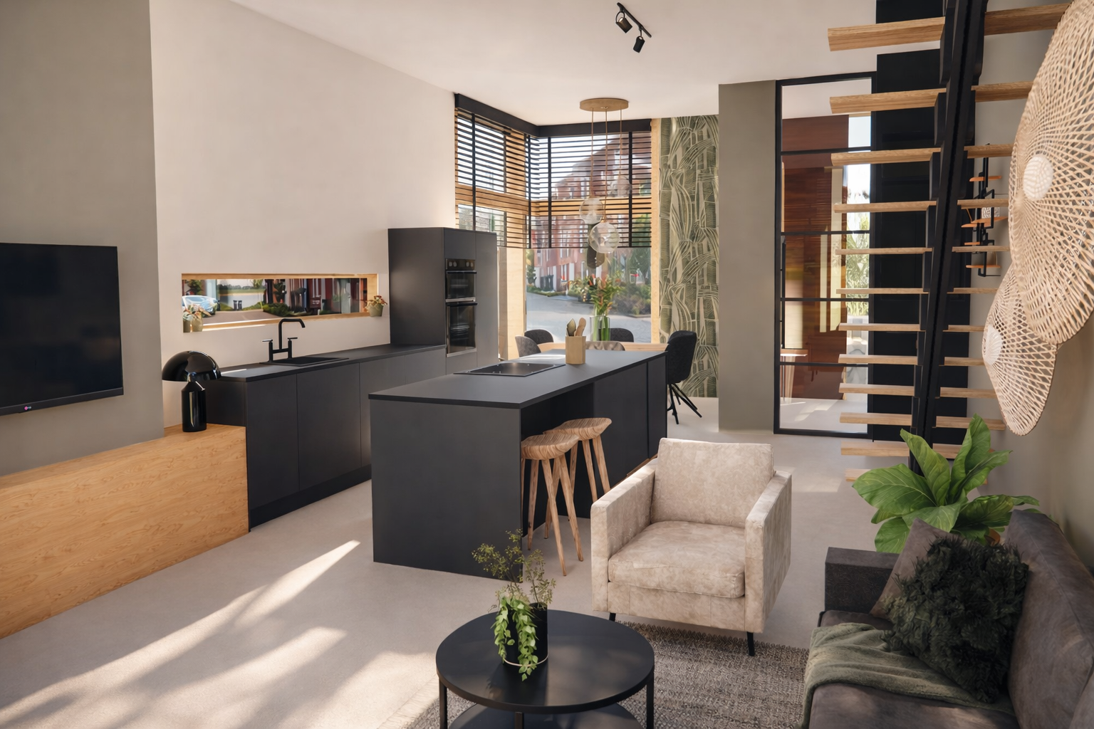 Voor deze woning mocht ik het interieur van de woonkamer en keuken ontwerpen. De wens was helder: een warm, gezellig geheel met Scandinavische invloeden en een subtiele industriële touch. Stoer, maar niet kil. Minimalistisch, maar niet leeg.